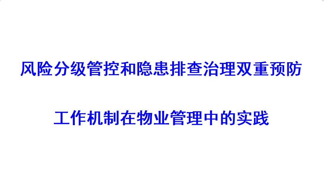 • 風(fēng)險(xiǎn)分級(jí)管控和隱患排查治理雙重預(yù)防工作機(jī)制在物業(yè)管理中的實(shí)踐 [2021-01-22]